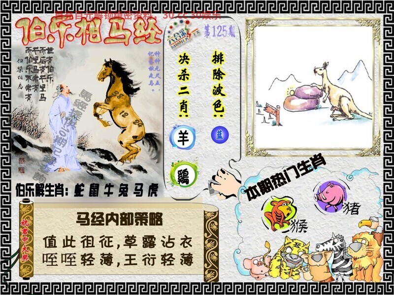 | 琴:兔蛇鸡 棋:鼠牛狗 书:虎龙马 画:羊猴猪 |